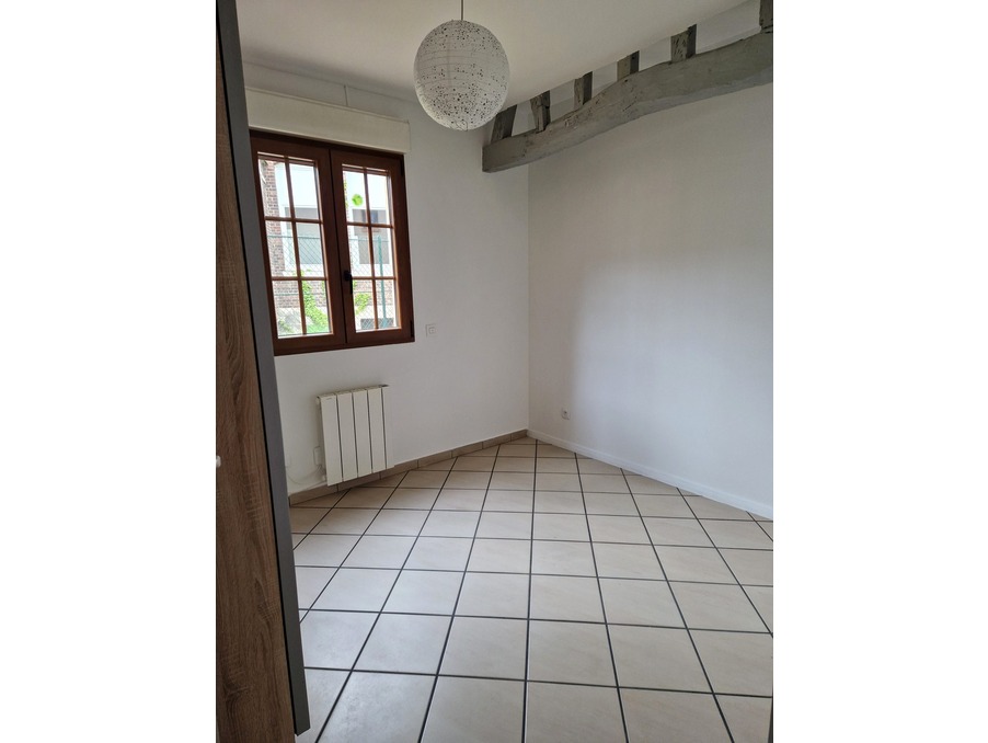 VERNON – CENTRE-VILLE. Appartement en RDC avec terrasse privative comprenant, entrée sur cuisine aménagée et équipée (four, plaque de cuisson, hotte, réfrigérateur, lave-vaisselle), WC/lave-mains, séjour avec poêle à granule avec accès terrasse, salle d’eau/WC, deux chambres dont une avec armoire.