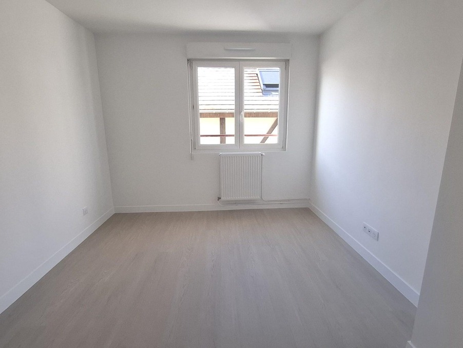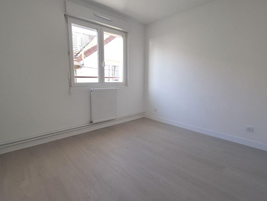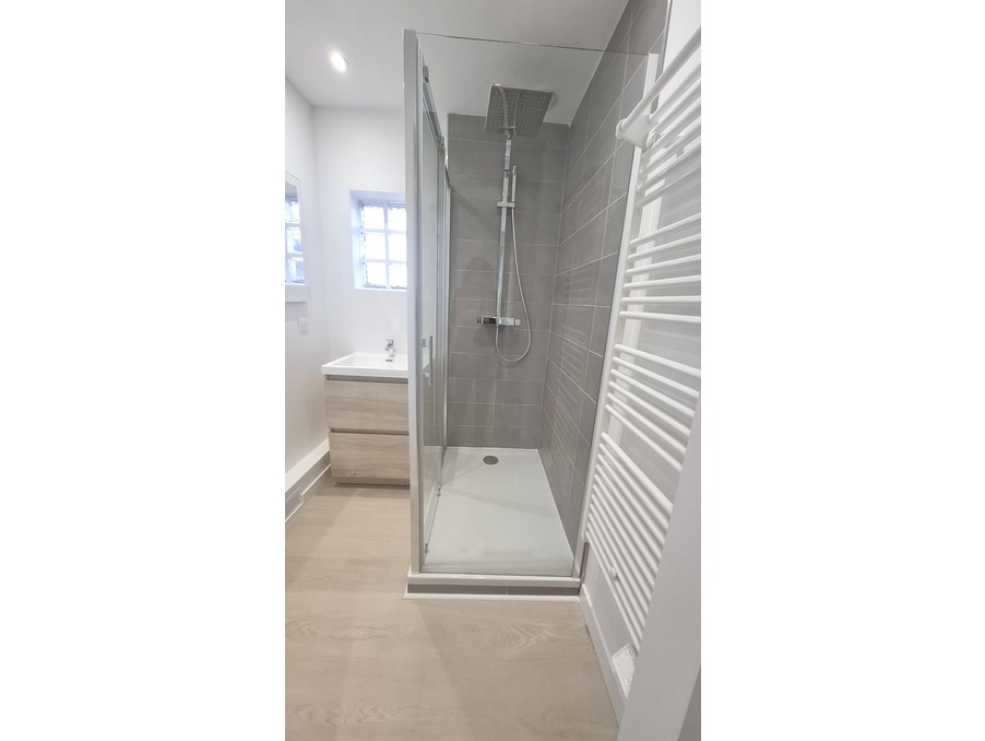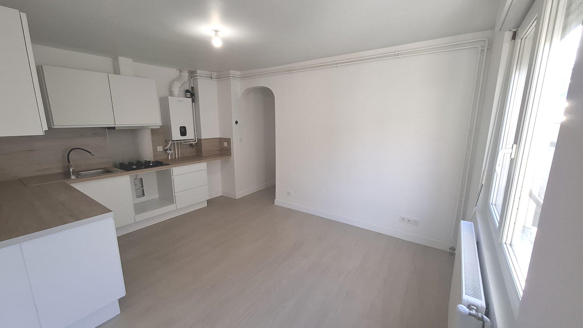 Dans petite monopropriété, sécurisée, au 1er étage appartement T3 entièrement rénové d'environ 46m² comprenant entrée, pièce de vie avec cuisine aménagée et équipée (plaque de cuisson et hotte), couloir desservant 2 chambres, salle de douches avec WC.