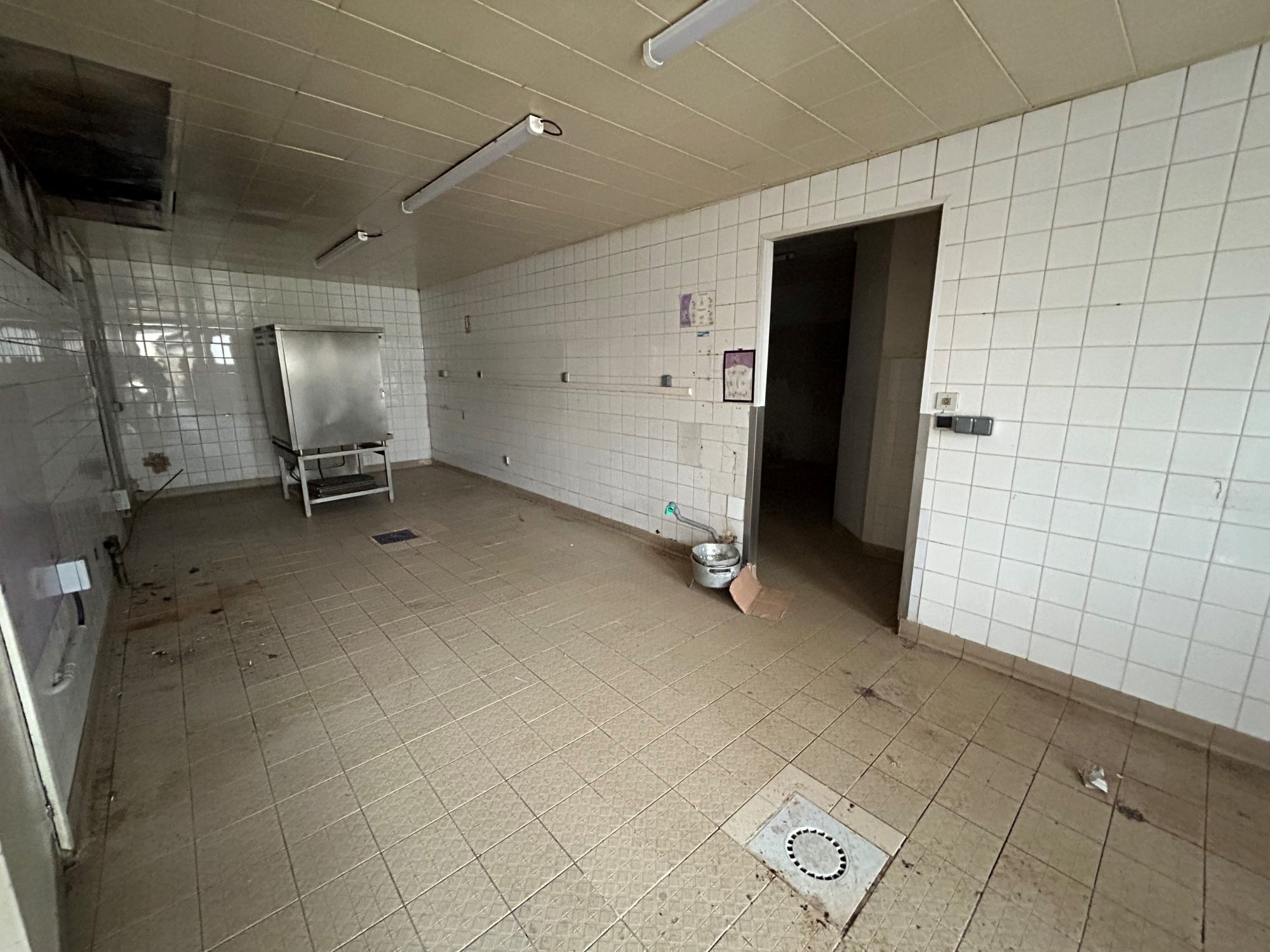 Un second espace d'environ 117 m² comprenant anciennes cuisines, local de stockage, sanitaires (WC/douches), vestiaires.